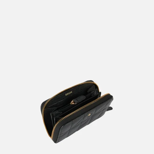 Portefeuille pour femme à soufflet et fermeture éclair, compagnon de la vie de tous les jours au style recherché. Ce modèle à la forme essentielle est réalisé en cuir foulonné raffiné à finition matelassée et est proposé ici dans une indémodable version noire. Doté d’un porte-monnaie à fermeture éclair et d’un séparateur de billets, ce modèle est spacieux et fonctionnel et idéal également pour voyager.Fermeture éclair.Curseur de fermeture éclair en cuir.Petit clou moleté décoratif.Six fentes porte-cartes intérieures des deux côtés.Séparateur pour billets.Porte-monnaie à fermeture éclair.Accessoires métalliques à finition or.Dimensions : L 15 cm x l 2,5 cm x H 9,5 cm.