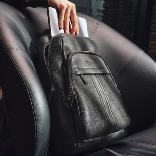 Sac à dos unisex, fonctionnel, pratique et très confortable. Le sac à dos Yvan est le compagnon idéal à emmener avec soi dans la vie de tous les jours, y compris en voyage. Son dos est bombé et doté de mesh, tout comme les anses, pour une respiration constante et adéquate qui assure un bien-être optimal. Les poches de rangement internes permettent de transporter tout ce qu’il faut pour le bureau ou les études. En cuir souple, il se présente dans une teinte noire indémodable.Fermeture éclair.Anses réglables.Anses et dos en mesh respirant.À l’extérieur : double poche sur le devant à fermeture éclair. À l’intérieur : poche rembourrée pour ordinateur portable et poche à fermeture éclair dans le compartiment principal. Pochette à stylos et poches ouvertes dans le compartiment petit format.Passant trolley postérieur.Plaquette métallique avec personnalisation Geox élégante et discrète.Dimensions : L 30 cm x H 36 cm x W 10 cm