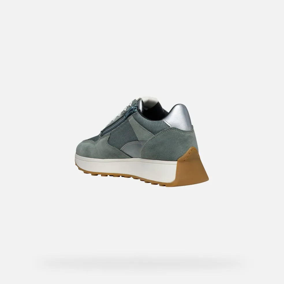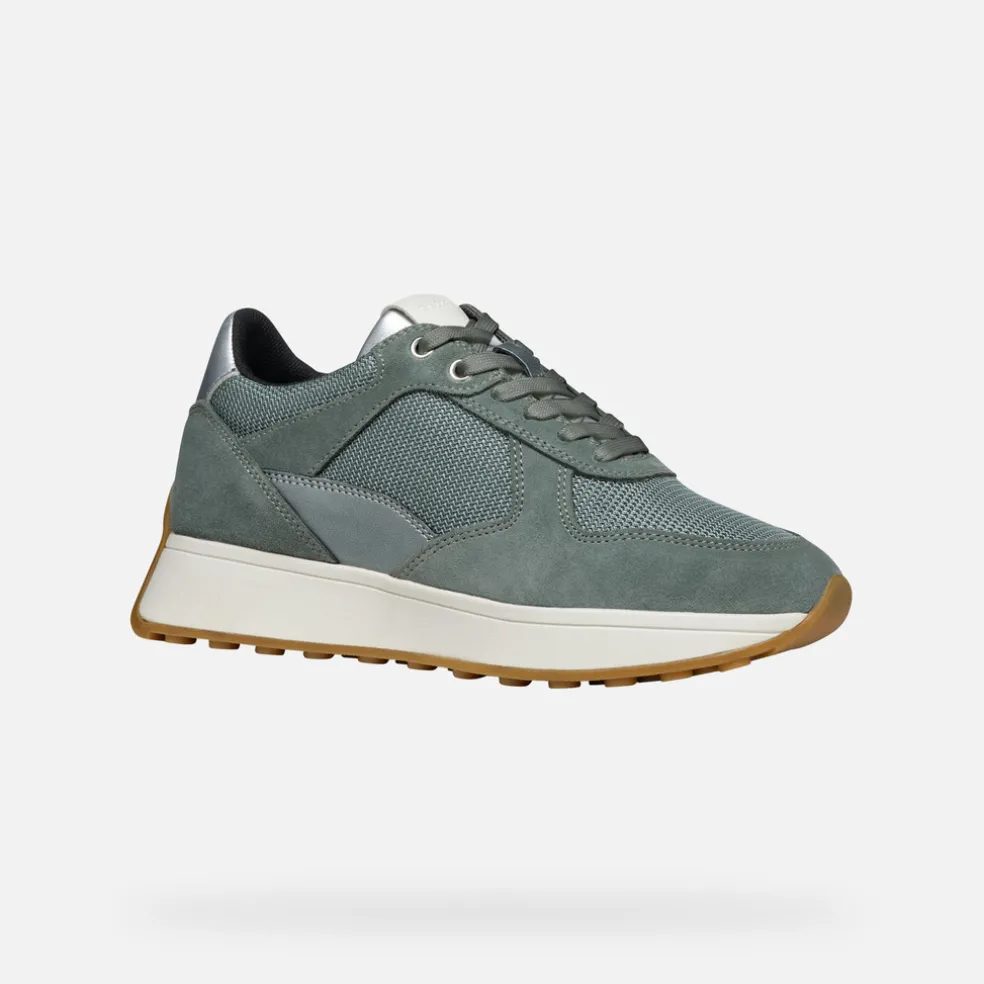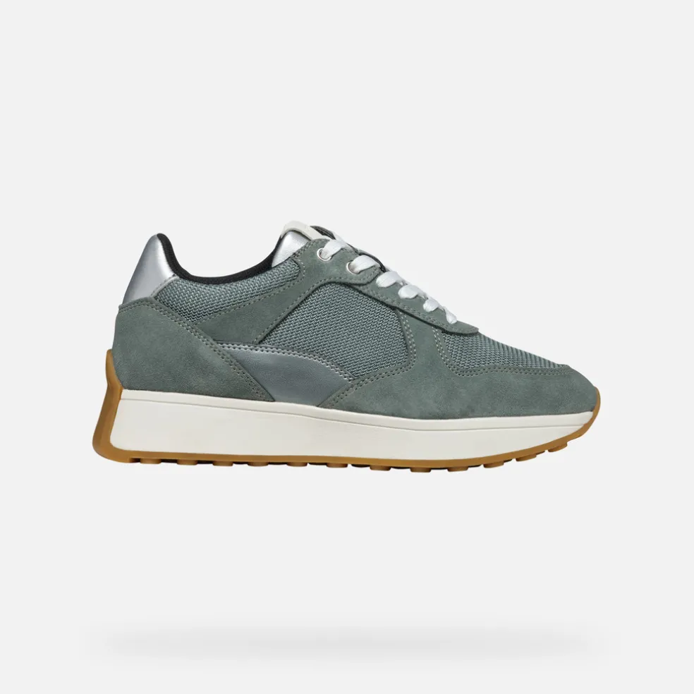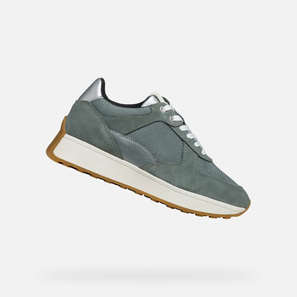 Sneakers pour femme au design d’inspiration running rétro et à l’ADN contemporain. Proposées dans un mélange de tissu brillant et cuir velours, ces chaussures sont déclinées ici dans une tonalité vert sauge délicate mais résolue. Sportives mais recherchées, les Amabel ajoutent une note sportive chic aux looks décontractés de tous les jours.