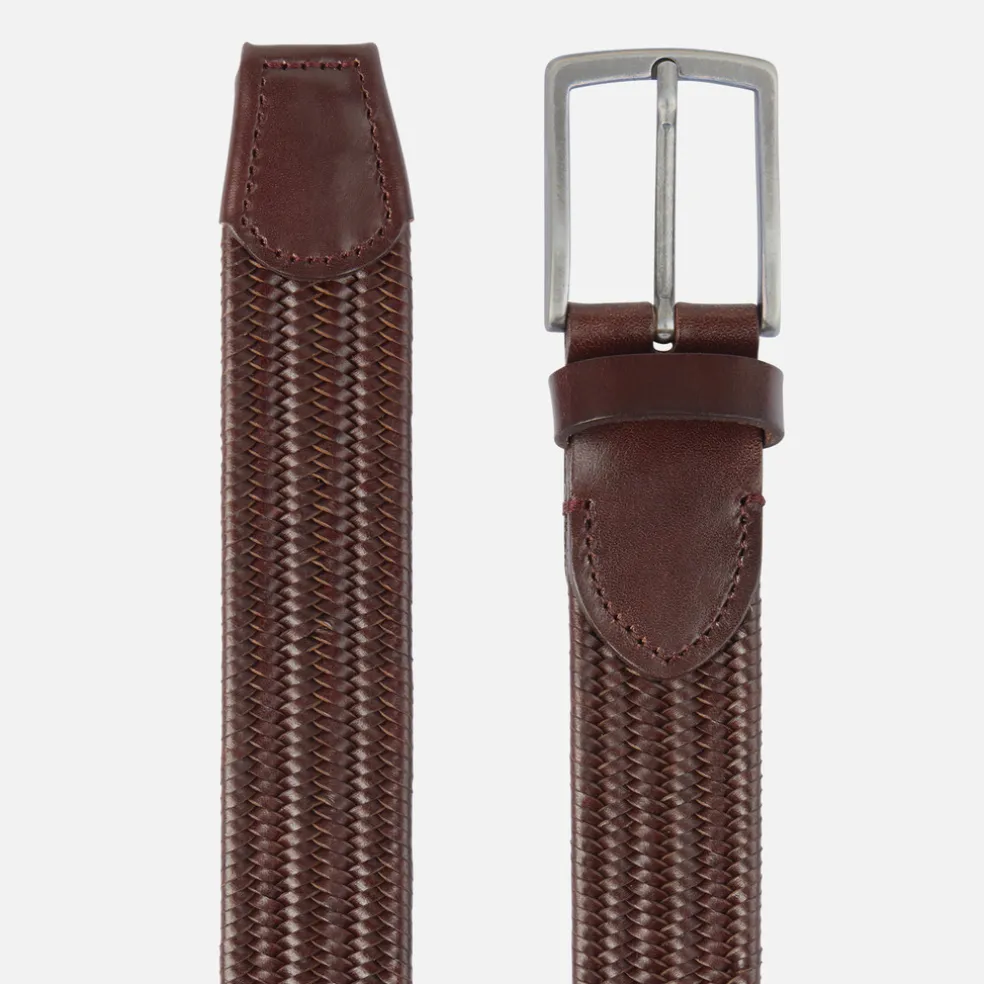Ceinture pour homme élastique, confortable et au style agréablement décontracté. Réalisé en matière à effet cuir à finition tressée, ce modèle est particulièrement polyvalent dans cette variante brun foncé classique. Adapté à différentes occasions d’utilisation, cet accessoire est incontournable dans la garde-robe de la belle saison.Accessoires métalliques à finition argent vieilli.Largeur : 3,5 cm.