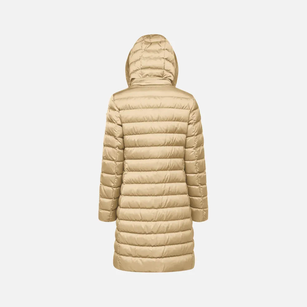 Doudoune longue pour femme chaude, polyvalente et pensée pour une utilisation quotidienne. Proposé ici dans une version sable avec un rembourrage en plumes régénérées XDOWN, le modèle Bettanie possède un design féminin qui met en valeur et enveloppe les formes. Réalisé dans un tissu de satin raffiné, ce modèle est doté d’une capuche amovible, enveloppante et protectrice avec une bordure en fausse fourrure.