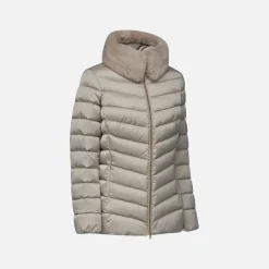 Doudoune courte pour femme au style décontracté chic, qui donne une touche féminine aux looks du quotidien. Décliné ici dans une couleur tourterelle raffinée, le modèle Bettanie affiche une coupe évasée qui enveloppe la silhouette. Proposé en tissu de satin avec un rembourrage doux en plumes régénérées XDOWN, ce modèle est rehaussé par un détail en fausse fourrure sur le col.