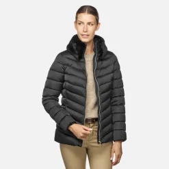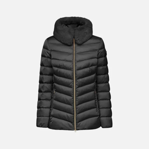 Doudoune courte pour femme au style décontracté chic, qui donne une touche féminine aux looks du quotidien. Décliné ici dans une variante noire classique, le modèle Bettanie affiche une coupe évasée qui enveloppe la silhouette. Proposé en tissu de satin avec un rembourrage doux en plumes régénérées XDOWN, ce modèle est rehaussé par un détail en fausse fourrure sur le col.