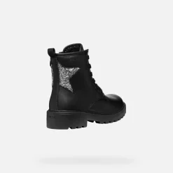 Bottines à lacets pour fille confortables et respirantes, au charme urbain et au design mordant. Proposées ici en noir, avec des détails argent foncé brillants, les Casey sont un modèle parfait pour ajouter une touche glamour à n’importe quel look. Réalisées en matière à effet cuir et tissu à paillettes, ces chaussures arborent une application en forme d’étoile.