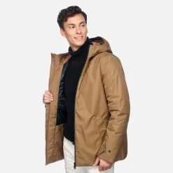 Parka mi-longue pour homme, garantie de confort et d’imperméabilité maximale même sous la pluie battante. Proposé ici en marron noisette, Clintford est un blouson à capuche protectrice, qui se marie avec désinvolture avec les looks citadins. Réalisé en twill de polyester recyclé résistant, ce modèle est doté d’un rembourrage en ouate chaude recyclée EcologicWARM.