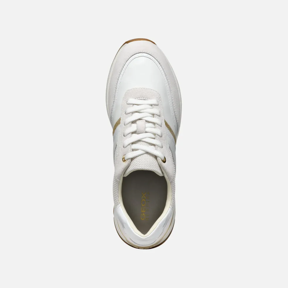 Sneakers pour femme légères, confortables et respirantes, qui réinterprètent le style sportif de manière décontractée chic. Réalisées dans une combinaison de cuir nappa souple et cuir velours, ces chaussures sont proposées ici dans une version blanc et or. Les Desya ajoutent une touche dynamique aux associations du quotidien et sont parfaites aussi bien pour la ville que pour les excursions extra-urbaines du week-end.