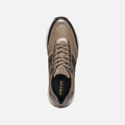 Sneakers pour femme légères, confortables et respirantes, qui réinterprètent le style sportif de manière citadine. Réalisées dans une combinaison de cuir nappa souple et cuir métallisé, ces chaussures sont proposées ici dans une version taupe au look féminin et résolu. Les Desya mettent en valeur les tenues décontractées chics de tous les jours et sont parfaites également pour accompagner les tenues des moments de loisirs.
