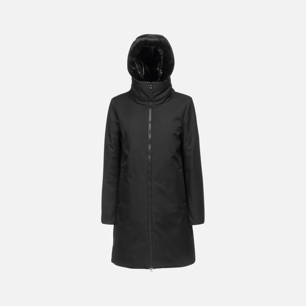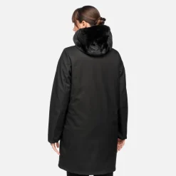 Parka longue pour femme au style moderne et féminin, idéale pour affronter le froid. Réalisé en softshell et proposé ici dans une version total black polyvalente, ce modèle affiche un rembourrage en ouate recyclée EcologicWARM. Doté d’un plastron intérieur amovible et d’une capuche en tissu recyclé à effet teddy, Desya est un blouson parfait pour la vie en ville.