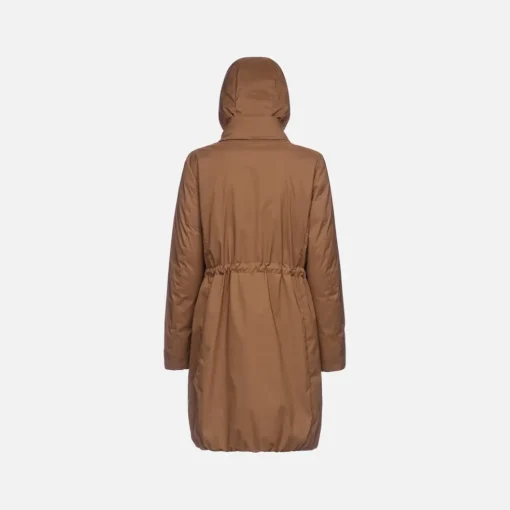 Veste longue pour femme matelassée, moderne et fonctionnelle, au look décontracté chic. Décliné ici dans une irrésistible version marron brûlé, le modèle Eleana est réalisé en polyester doux à l’aspect mat, avec une doublure intérieure matelassée et de couleur contrastée. Doté d’une capuche amovible, de trois poches intérieures pratiques et d’un cordon qui permet de souligner le tour de taille, ce manteau est idéal aussi bien en ville qu’en voyage.
