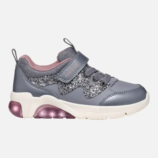 Sneakers basses pour fille au look actif, romantiques et féminines. Proposées ici en gris et rose avec des détails brillants, les Fadinlight rehaussent n’importe quelle tenue décontractée, à l’école ou pendant les moments de jeu. Réalisées en matière à effet cuir et matière à effet cuir nacré, ces chaussures sont un mélange de confort et de divertissement grâce aux lumières intégrées dans la semelle extérieure.