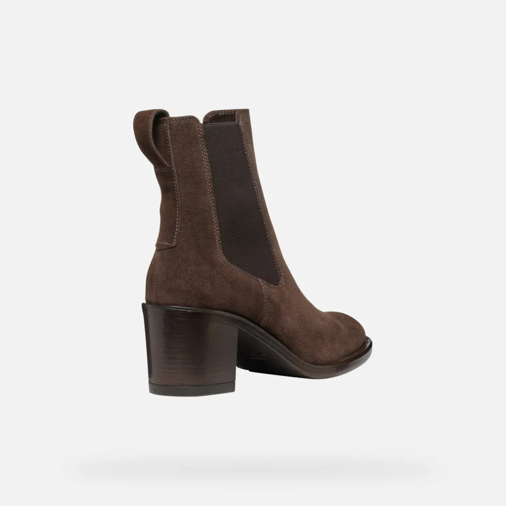 Bottines pour femme à talon large confortable, agréables à porter et respirantes. Féminines et au style classique, les Farnia sont les alliées parfaites pour la ville. Réalisées en cuir velours souple, ces chaussures sont proposées dans une élégante version brun foncé qui se marie parfaitement avec n’importe quelle tenue.