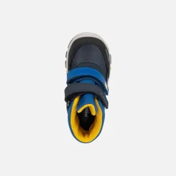 Bottines pour bébé imperméables et amorties, au design d’inspiration outdoor. Proposées ici en bleu marine et bleu roi, les Flanfil ABX présentent une tige vive ornée d’imprimés et d’applications dédiés à Super Mario. Nées de la collaboration entre Geox et Nintendo, ces chaussures sont réalisées en matière à effet cuir et nylon imprimé et gardent les petits pieds au chaud et toujours au sec, même sous la pluie.
