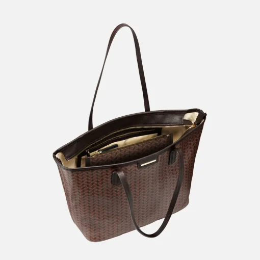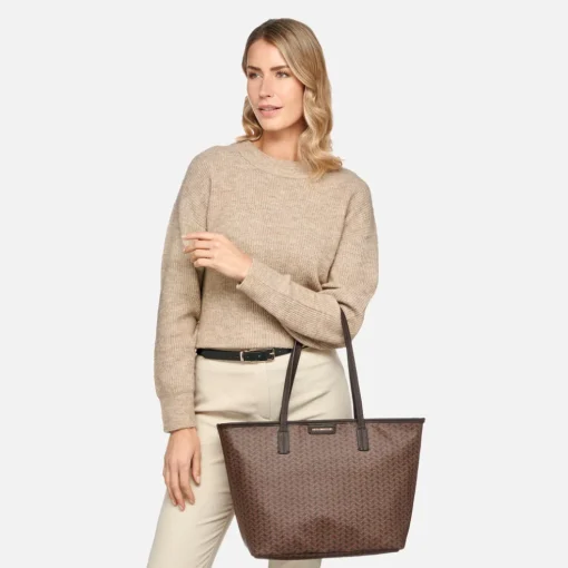Sac cabas maxi pour femme à l’épaule, au charme citadin et contemporain. Réalisé en matière à effet cuir imprimé, ce modèle est présenté ici dans une originale tonalité marron foncé. Fonctionnel, spacieux et adapté également pour se rendre au bureau, le sac Gardren S est doté d’une anse double et d’une poche intérieure pratique.Modèle se portant à l’épaule.Fermeture éclair en métal.Anse double.Deux poches intérieures.Pochette intérieure.Dimensions : L 32 cm x l 15 cm x H 28 cm.