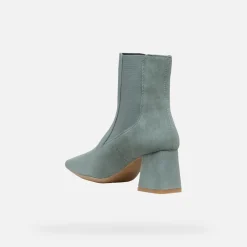 Bottines pour femme à bout pointu et confortable talon moyen, légères et respirantes. Combinaison idéale de style et de bien-être, ces chaussures sont réalisées en daim souple et sont proposées ici dans une variante vert sauge sophistiquée. Féminines et raffinées grâce à leurs lignes fuselées, les Giselda sont adaptées à la fois aux looks professionnels et aux associations les plus élégantes.