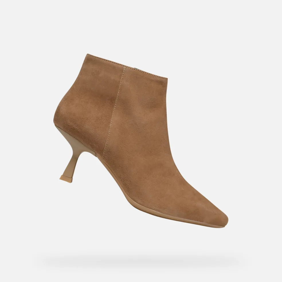 Bottines pour femme à bout pointu et talon fin de faible hauteur au style moderne et élégant. Réalisée en daim souple pour un look recherché, la tige de ce modèle est déclinée ici dans une variante brun argile raffinée. Confortables et respirantes, les Gilselda R complètent avec une touche tendance les tenues du bureau ou des sorties en soirée, en garantissant un bien-être maximal.