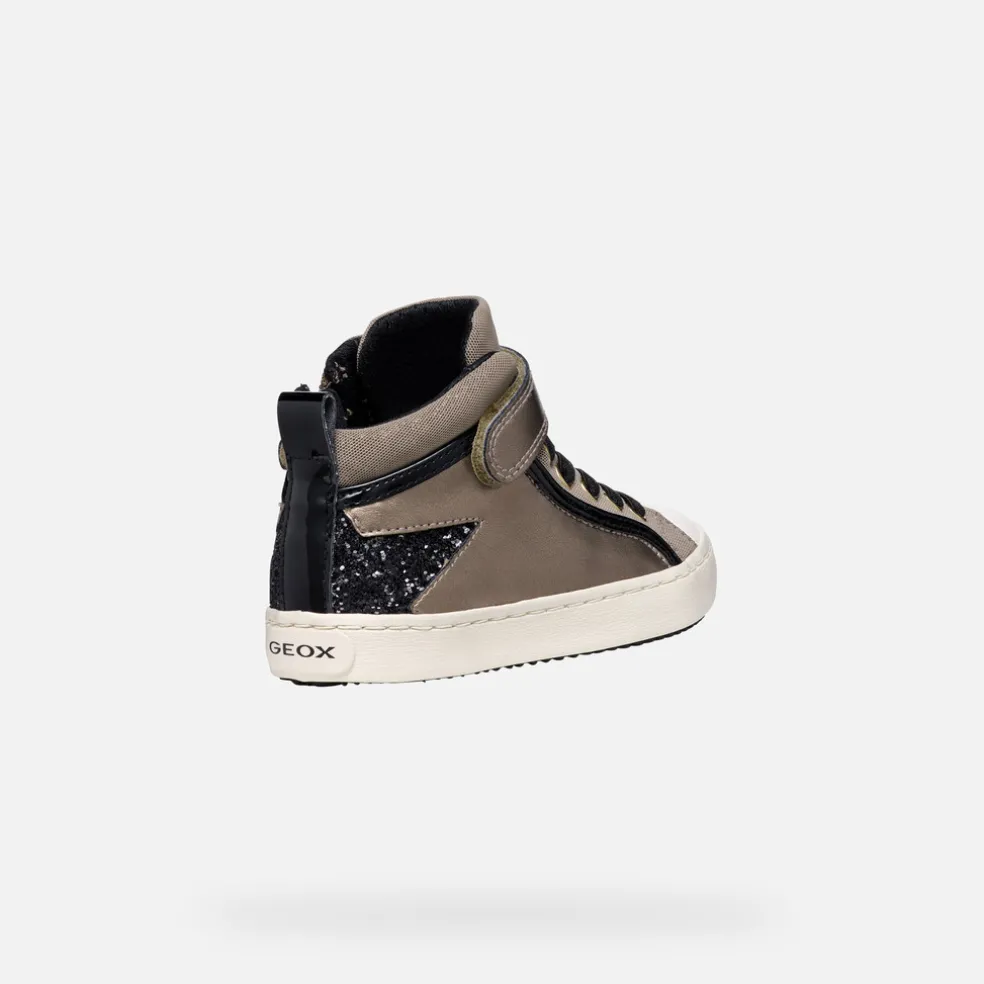 Sneakers semi-montantes pour fille au charme décontracté moderne, parfaites aussi bien pour l’école que pour les loisirs. Déclinées ici en beige foncé avec des détails noirs, les Kalispera présentent des applications brillantes sur le talon. Réalisées en matière à effet cuir nacré et mesh brillant, ces chaussures plaisent grâce à leur look à la mode aux réminiscences vintage.