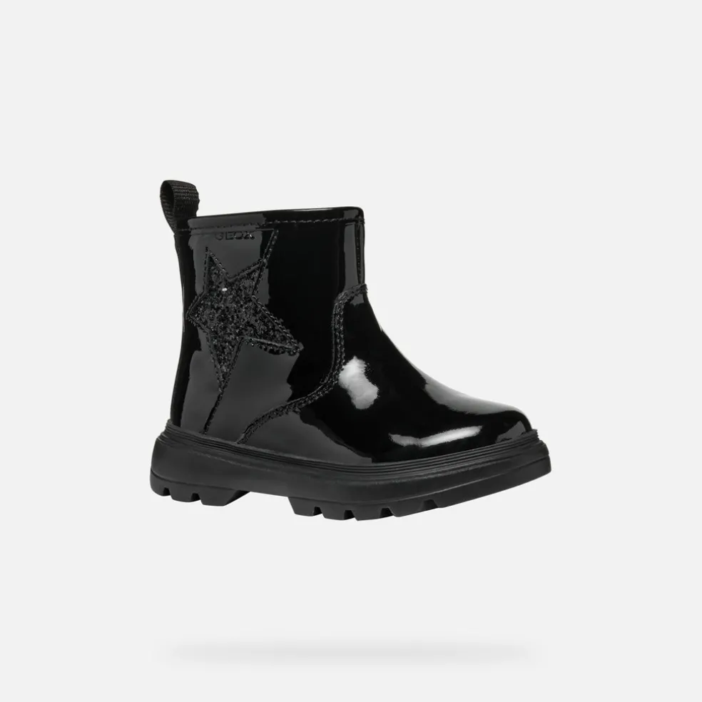 Bottines slip-on pour petite fille dotées d’une confortable semelle extérieure chunky. Avec leur tige à la mode présentée ici en noir avec une application latérale brillante en forme d’étoile, les Kiddartah sont parfaites aussi bien pour accompagner les tenues décontractées que pour les occasions spéciales. Réalisées en cuir verni et tissu à paillettes, ces chaussures sont confortables, légères et respirantes.