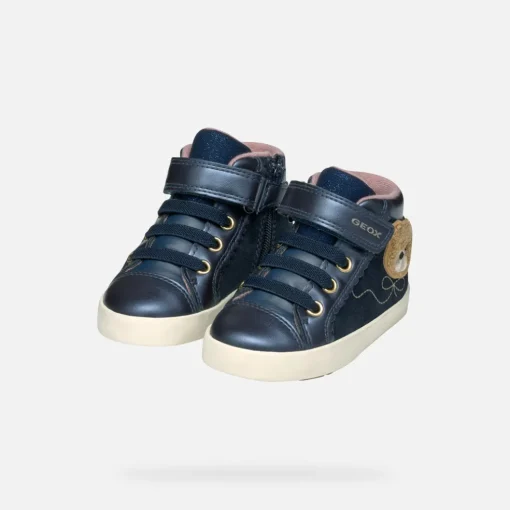 Sneakers semi-montantes pour petite fille décontractées au charme contemporain, parfaites pour accompagner les minilooks citadins de votre enfant. La tige vieux bleu marine foncé de ce modèle présente une tendre application latérale, pour égayer chaque pas de votre enfant. Réalisées en cuir velours souple et matière à effet cuir nacré, les Kilwi offrent confort et respiration optimale.