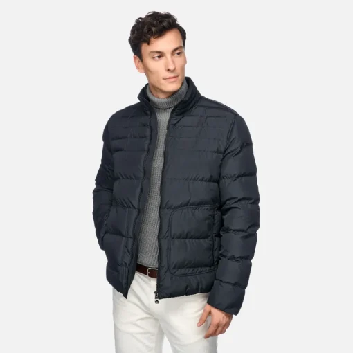 Blouson court pour homme à la coupe slim et au style décontracté et contemporain, doté d’un rembourrage en ouate recyclée EcologicWARM. Dans cette version bleu nuit raffinée, le modèle Magnete est adapté pour accompagner aussi bien les looks quotidiens que les tenues des moments de loisirs. Proposé en taffetas de polyester recyclé à l’aspect mat, il s’agit d’un manteau polyvalent et fonctionnel, car il est déperlant et coupe-vent.
