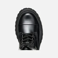 Bottines à lacets pour fille à la mode, idéales pour accompagner les looks des plus grandes. La tige noire et le design à la forte personnalité de ce modèle le rendent parfait pour donner une touche glamour aux tenues citadines du quotidien. Réalisées en matière à effet cuir brossé, ces chaussures sont ornées de détails métalliques et affichent une semelle extérieure chunky moderne et tendance.