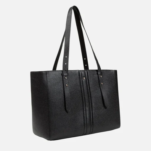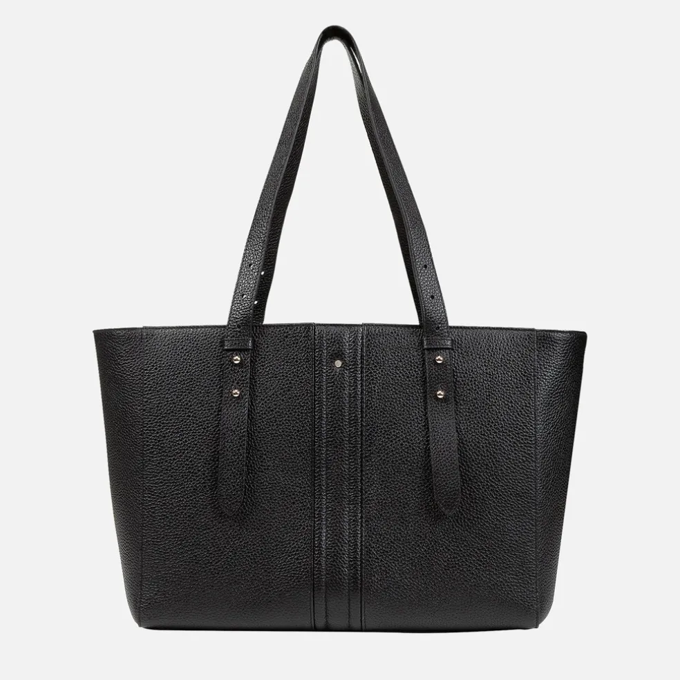 Sac cabas pour femme pratique et de capacité très généreuse, au style frais et contemporain. Réalisé en cuir foulonné, ce modèle est présenté ici dans une indispensable version noire. Parfait pour les déplacements quotidiens en ville, le sac Milleiny est doté d’une fermeture éclair métallique et d’une anse double réglable avec des clous.Modèle se portant à l’épaule.Fermeture zippée.Double anse réglable.Deux poches intérieures dont une à fermeture éclair.Poche arrière.Accessoires métalliques à finition or.Dimensions : L 46,5 cm x l 15 cm x H 27 cm.