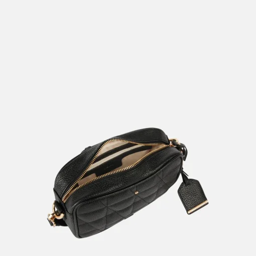 Sac à bandoulière pour femme pratique à l’ADN moderne, pensé pour traverser la ville les mains libres. Réalisé en cuir foulonné souple avec une finition matelassée spéciale, ce modèle est proposé ici dans une version noire au style décontracté chic. Accessoire essentiel de la garde-robe quotidienne, le modèle Narcisia est compact et extrêmement fonctionnel et rehausse n’importe quel look avec une touche raffinée.Modèle se portant en bandoulière et à l’épaule.Fermeture éclair en métal.Bandoulière réglable et amovible.Deux poches intérieures.Porte-clés amovible avec plaquette en cuir.Accessoires métalliques à finition or.Dimensions : L 23 cm x l 6 cm x H 14 cm.