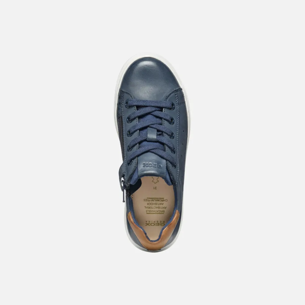 Sneakers basses junior aux lignes essentielles et raffinées, d’inspiration tennis. Déclinées ici en bleu marine avec des détails marron, les Nashik sont un modèle polyvalent qui se marie aisément avec les tenues quotidiennes de l’école ou du week-end. Réalisées en cuir ciré et toile, ces chaussures sont légères et respirantes, mariage parfait de style intemporel et de confort.