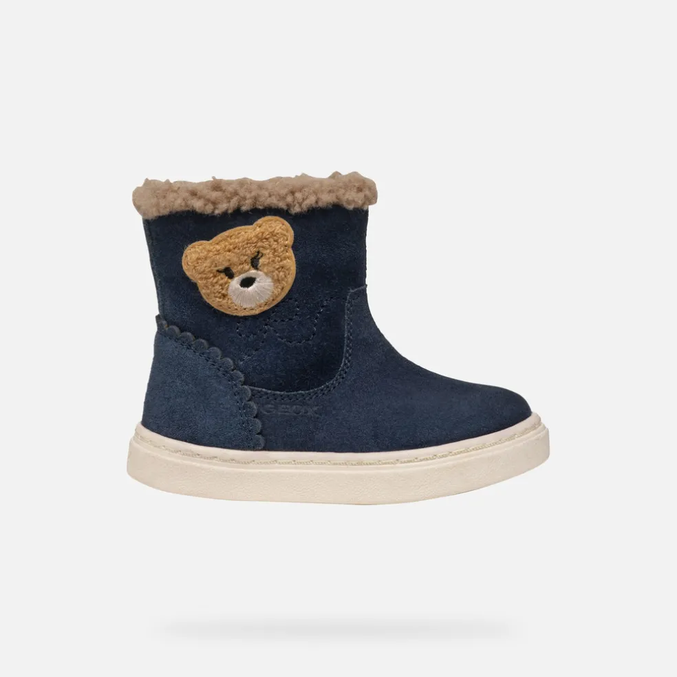 Bottines pour petite fille romantiques et féminines, parfaites pour rehausser les tenues décontractées quotidiennes de votre enfant. Dans cette version bleu marine, les Nashik arborent des lignes minimalistes et une tendre application en forme d’ourson sur la tige. Réalisées en cuir velours souple avec des détails en fausse fourrure, ces chaussures sont chaudes, respirantes et garantissent un confort maximal.