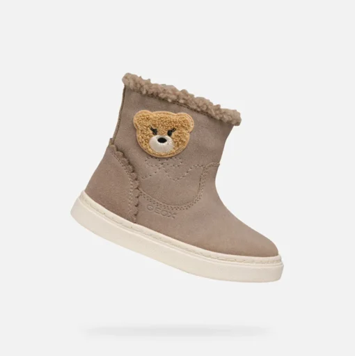 Bottines pour petite fille romantiques et féminines, parfaites pour rehausser les tenues décontractées quotidiennes de votre enfant. Dans cette version beige foncé, les Nashik arborent des lignes minimalistes et une tendre application en forme d’ourson sur la tige. Réalisées en cuir velours souple avec des détails en fausse fourrure, ces chaussures sont chaudes, respirantes et garantissent un confort maximal.