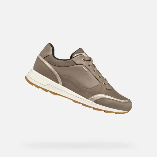 Sneakers pour femme imperméables inspirées de l’univers du running, garantie de confort et de respirabilité. Proposées ici dans une tonalité taupe classique, ces chaussures possèdent une tige en cuir lisse et tissu au design sobre, soignée dans les moindres détails. Les New Aneko ABX sont des chaussures parfaites pour ajouter une note sportive aux tenues décontractées, adaptées également en cas de mauvais temps.