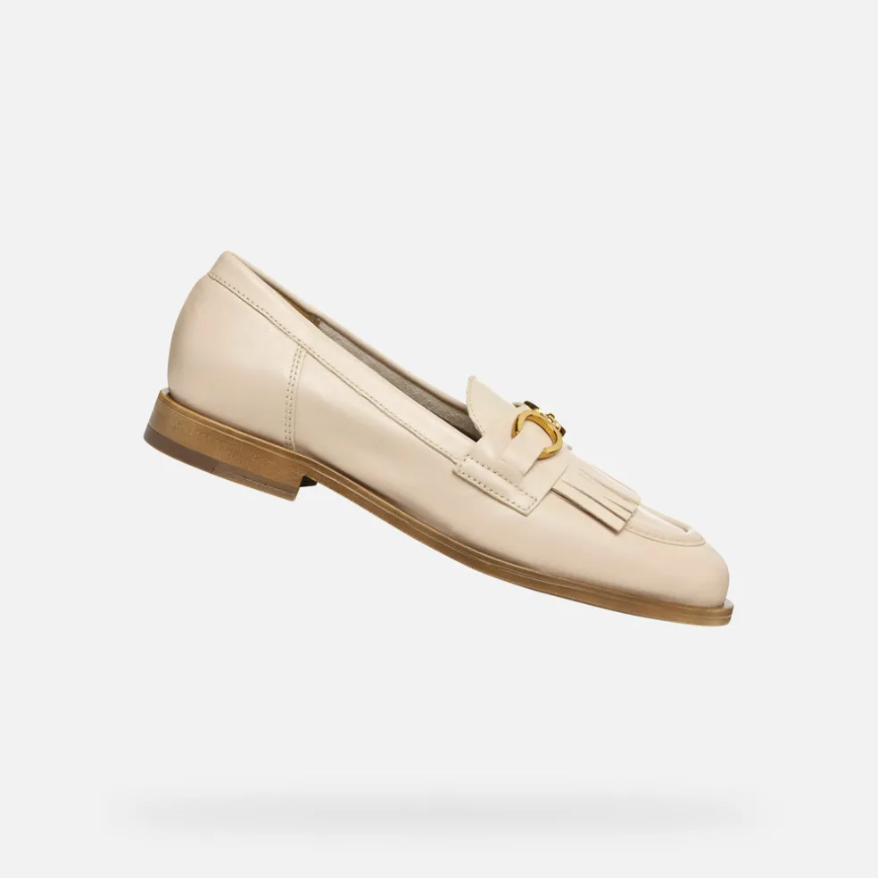 Mocassins pour femme à l’esthétique urbaine et dynamique, qui offrent confort et respirabilité tout au long de la journée. Réalisées en cuir nappa souple et rehaussées par des franges et une maxi boucle, ces chaussures sont proposées ici dans une délicate tonalité beige. Ornées d’un détail métallique, les Prometya ajoutent une note contemporaine aux tenues citadines.