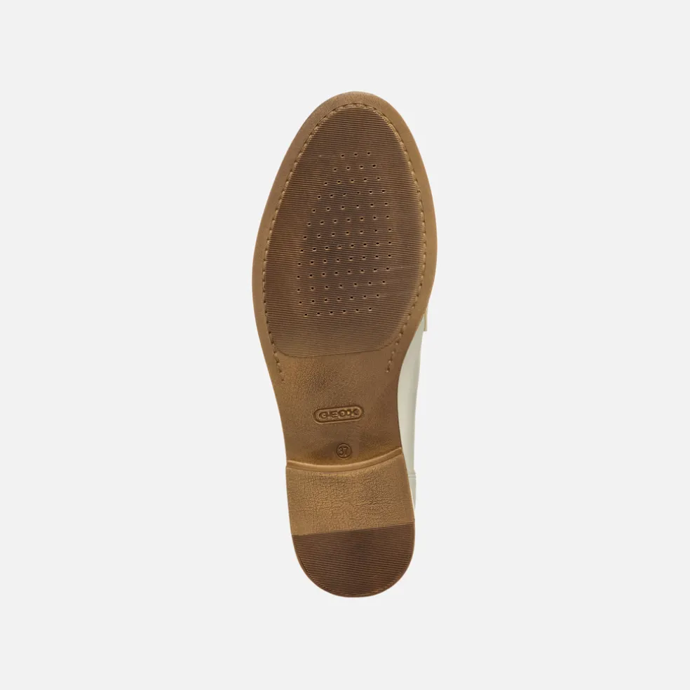 Mocassins pour femme à l’esthétique urbaine et dynamique, qui offrent confort et respirabilité tout au long de la journée. Réalisées en cuir nappa souple et rehaussées par des franges et une maxi boucle, ces chaussures sont proposées ici dans une lumineuse tonalité blanc lait. Ornées d’un détail métallique, les Prometya ajoutent une note contemporaine aux tenues citadines.