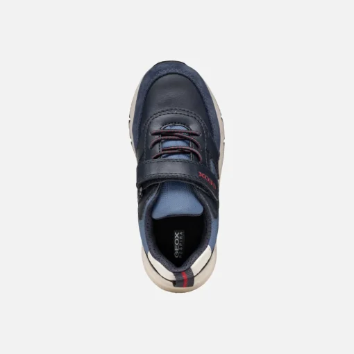 Sneakers basses pour garçon d’inspiration running au charme rétro. Amorties et affichant un impeccable style sportif, les Rooner sont proposées dans une combinaison de bleu marine et rouge foncé. Réalisées en matière à effet cuir et nylon, ces chaussures complètent les tenues quotidiennes, à l’école et pendant le week-end.