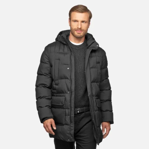 Blouson long pour homme à la coupe regular, véritable incontournable de la garde-robe citadine antifroid. Proposé en tissu de polyester imprimé à micromotif, déperlant et coupe-vent, Sandford est décliné dans une intrigante tonalité noir intense. Doté d’une capuche amovible et de quatre poches extérieures pratiques, ce modèle présente un rembourrage chaud en ouate recyclée EcologicWARM.