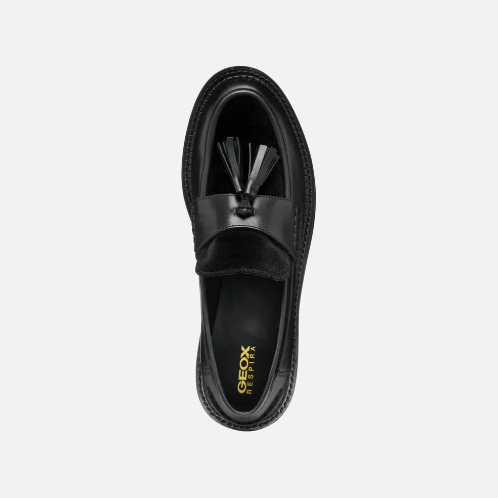 Mocassins pour femme à la saveur recherchée et aux lignes modernes, qui offrent confort et respirabilité. Proposées dans une indémodable version noire, les Serilda affichent une tige réalisée en cuir lisse avec des détails en velours, rehaussée par des pampilles. Idéales pour la ville, ces chaussures complètent les tenues quotidiennes plus ou moins formelles, pour un look toujours impeccable.