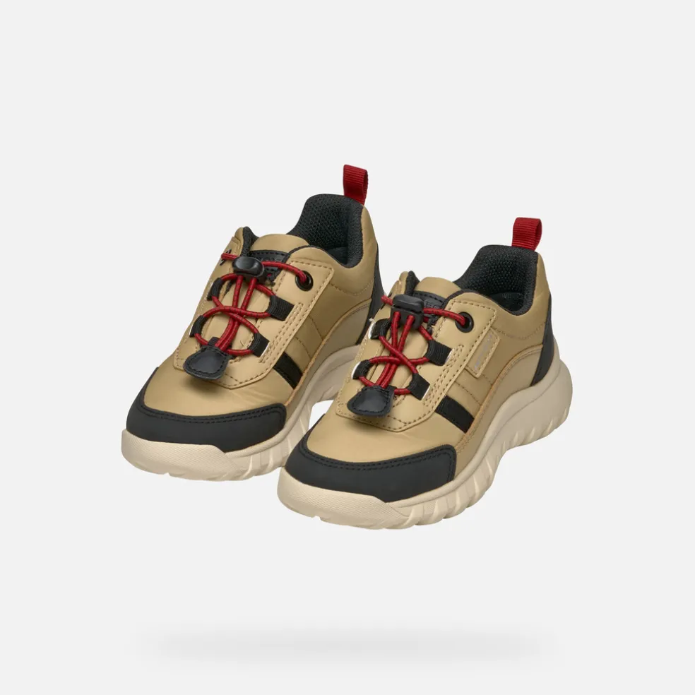 Chaussures junior au look hybride, qui assurent une protection maximale même en cas de mauvais temps. Proposées ici dans un mélange de beige et noir, les Simbyos ABX sont amorties et confortables. Réalisées en nylon et matière à effet cuir, ces chaussures sont imperméables, légères et respirantes, idéales pour les explorations en plein air.
