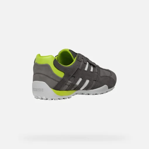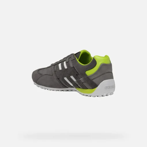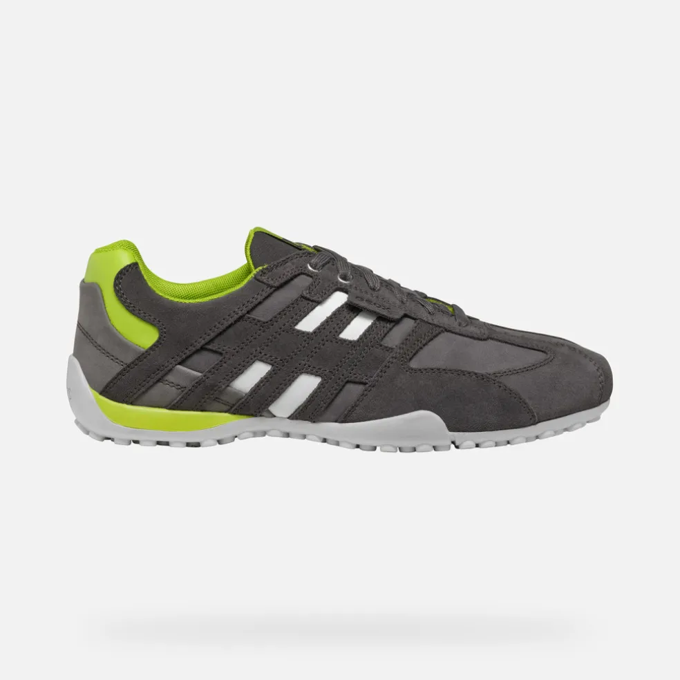 Sneakers légères pour homme au style sportif et dynamique, parfaites pour les activités de loisirs. La tige en cuir velours et matière à effet nubuck de ce modèle joue avec les contrastes et est déclinée ici dans une version particulière gris anthracite avec des détails citron vert. Pensées pour compléter les looks informels citadins avec une note active, les Snake garantissent confort et respirabilité.