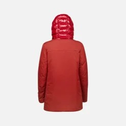 Veste pour femme réversible à la saveur contemporaine, idéale même pour les mois les plus froids. Proposé dans une originale version rouge foncé, ce modèle présente une face extérieure lisse en tissu taffetas et une face intérieure et une capuche de protection en nylon brillant laqué. Chaud et respirant, le modèle Spherica™ est un vêtement respirant parfait pour la ville, qui assure un confort maximal même en cas de mauvais temps.