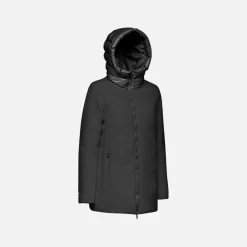 Veste pour femme réversible à la saveur contemporaine, idéale même pour les mois les plus froids. Proposé en version total black, ce modèle présente une face extérieure lisse en tissu taffetas et une face intérieure et une capuche de protection en nylon brillant laqué. Chaud et respirant, le modèle Spherica™ est un vêtement respirant parfait pour la ville, qui assure un confort maximal même en cas de mauvais temps.