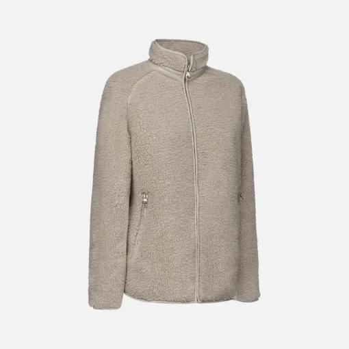 Sweat-shirt pour femme à fermeture éclair et petit col, chaud, respirant et confortable. Dans cette variante tourterelle sophistiquée, ce modèle présente des poches latérales pratiques à fermeture éclair. Parfait aussi bien pour les loisirs que pour accompagner les looks décontractés du quotidien, ce modèle est réalisé en tissu recyclé doux à effet teddy.