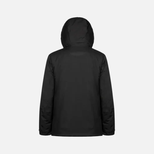 Parka longue pour homme à l’esthétique outdoor, gage de protection et d’imperméabilité même sous la pluie battante. Proposé ici dans une version noire, Terreste est un manteau indispensable dans la garde-robe de la saison la plus froide, parfait pour la vie en ville et les loisirs. Réalisé en twill de polyester léger recyclé à double couche, ce modèle bénéficie d’un plastron intérieur amovible en nylon brillant et d’un rembourrage chaud en ouate recyclée.
