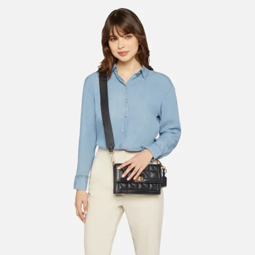 Sac à bandoulière pour femme au design contemporain et au style glamour et ultraféminin. Proposé ici dans une version noire sophistiquée, ce modèle est réalisé en cuir foulonné et est rehaussé par une finition matelassée géométrique qui sort du lot. Pratique et élégant à la fois, le sac Veriana est parfait pour les looks à porter de jour comme de nuit et peut aussi être porté comme une pochette grâce à sa bandoulière amovible.Se porte en bandoulière ou à la main, comme une pochette.Fermeture avec patte et fermoir en métal.Bandoulière réglable et amovible.Deux poches intérieures.Porte-clés amovible avec plaquette en cuir. Accessoires métalliques à finition or.Dimensions : L 22 cm x l 4,5 cm x H 14 cm.