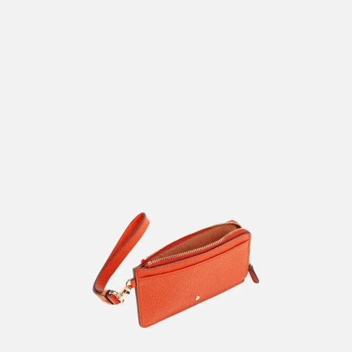 Portefeuille pratique pour femme au design moderne et compact et à l’épaisseur réduite. Réalisé en cuir foulonné résistant pour un look impeccable, ce modèle est présenté ici dans une vive version orange. Compagnon indispensable au quotidien, à emporter avec soi également en voyage, ce modèle est doté d’une fermeture éclair latérale et de fentes porte-cartes pratiques.Fermeture zippée.Boucle amovible.Cinq fentes porte-cartes verticales.Un porte-cartes à l’avant et un à l’arrière.Accessoires métalliques à finition or.Dimensions : L 14,5 cm x l 1,5 cm x H 8,5 cm.
